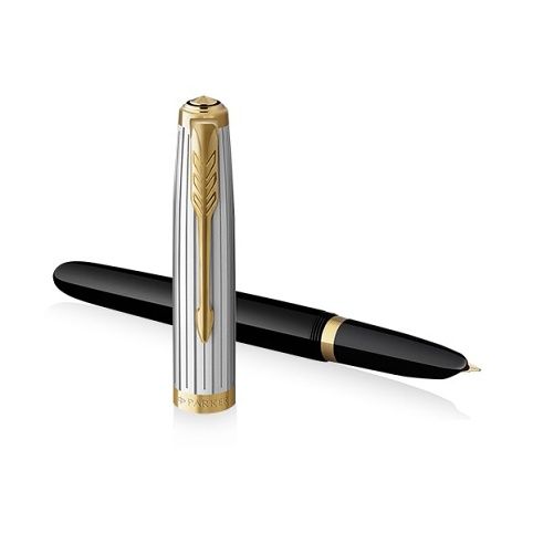 Temně fialové plnicí pero Parker 51 v provedení Deluxe. Je vyrobené z černé pryskyřice. Samozřejmostí je skrytý hrot, který je typický právě pro tuto modelovou řadu.