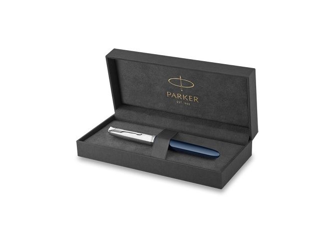 Temně modré plnicí pero Parker 51 je vyrobené z ušlechtilé pryskyřice. Samozřejmostí je skrytý hrot, který je typický právě pro tuto modelovou řadu.
