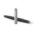 Lakované tělo z broušené nerezové oceli a vrchní část z broušené nerezové oceli. V kombinaci s doplňky z nerezové oceli pokovenými chromem, s leštěnou úpravou.Plnicí pero:nasazovací víčkohrot z nerezové ocelidvoukanálkový systém zásobování hrotu inkoustempřizpůsobeno výhradně k používání inkoustových bombiček QUINK nebo konvertoru (není součástí balení)Dodáváno s modrou bombičkou, v dárkové krabičce.