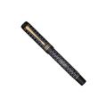 NASKLADNĚNÍ TOHOTO PRODUKTU OČEKÁVÁME NA PŘELOMU ZÁŘÍ A ŘÍJNA 2021., Plnicí pero větší velikosti, tělo a víčko zněkolika tenkých vrstev difuzně vázané vzácné pryskyřice vytváří nápadné barevné pruhy. Úchop zlesklé černé pryskyřice. Korunka, víčka zplátkového zlata srytinou 100th - stého výročí. Prstence na víčku, typické pro Duofold, jsou zplátkového zlata. Ikonický klip ve tvaru šípu pokovený zlatem. Hrot, z18karátového zlata (ryzost Au 750/1000) se zdobnou rytinou karetního esa a stého výročí, částečně pokovený rhodiem., PLNICÍ PERO: