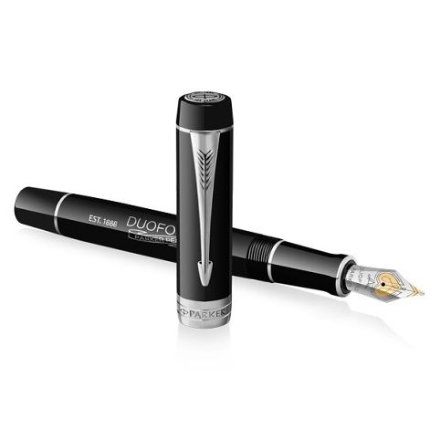 možnost používat i inkoustové bombičky Quink, Dodáváno v luxusní dárkové kazetě s koženým pouzdrem, lahvičkou černého inkoustu a s konvertorem. Součástí balení je také brožurka a dárková taška., JAK SE LIŠÍ HROTY F A M?, F - Slabý hrot (Fine) - Vhodný pro běžné psaní a poznámky. Mírný tlak vytváří jemnou linku. Velmi oblíbený, vhodný pro uživatele se standardním rukopisem., M - Střední hrot (Medium) - Průměrný tlak a šíře linky. Vhodný pro uživatele, kteří mají rádi maličko silnější linku., V roce 1888 podnikl George S. Parker první z nesčetných kroků na cestě plné ambicí, vášně a inovací. Již 135 let Parker nepřetržitě staví na odkazu řemeslné zručnosti a kvality,, díky čemuž se jméno Parker stalo synonymem dokonalosti v oblasti prestižního psaní. K této příležitosti vydává Parker tuto speciální edici Duofold 135th SE., Duofold symbolem vytříbenosti a elegance. Nejvyšší nároky na kvalitu provedení a důraz na každý detail pera, vyrobeného z celkem 21 jednotlivých a pečlivě ručně sestavených kusů,, činí z každého Duofolda důstojného následovníka svých slavných předchůdců a žijící ikonu.