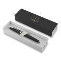 Černé plnicí pero Parker IM Essential má mosazné tělo a víčko s matnou lakovanou povrchovou úpravou. V kombinaci s doplňky pokovenými chromem. Hrot z nerezové oceli je zdobený jemnou rytinou.