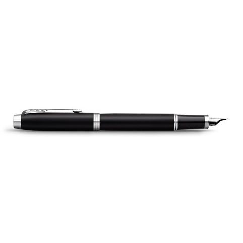 Černé plnicí pero Parker IM Essential má mosazné tělo a víčko s matnou lakovanou povrchovou úpravou. V kombinaci s doplňky pokovenými chromem. Hrot z nerezové oceli je zdobený jemnou rytinou.