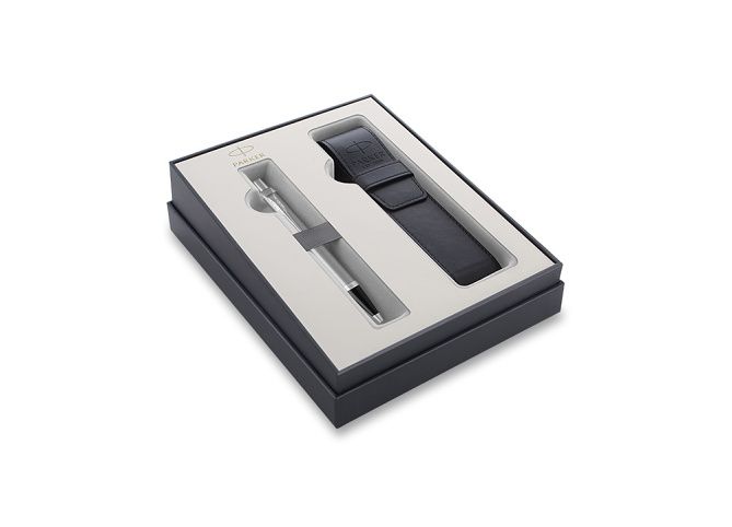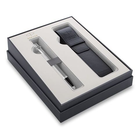 Kuličková tužka Parker IM Essential Stainless Steel CT v dárkové kazetě s pouzdrem s tělem z broušené nerezové oceli. V kombinaci s doplňky pokovenými chromem.