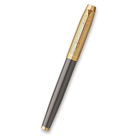 Roller Parker IM Premium Pioneers Collection Arrow GT má tělo znerezové oceli pokryté lesklým šedým lakem. Víčko s ikonickým vzorem "šípu" vytvořeným chemickým leptáním. V kombinaci s doplňky pozlacenými pomocí techniky PVD.