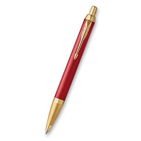 Sada obsahuje černé PU pouzdro a kuličkové pero Parker IM Premium Red s červeně lakovaným mosazným tělem s reliéfní rytinou vyvedenou pomocí laseru. V kombinaci s doplňky pokovenými zlatem.