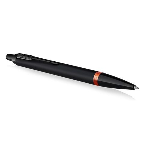 Kuličková tužkaParker IM Professionals má tělo pokryté černým lakem, potažené pomocí techniky PVD odolnou matně černou vrstvou. Dolní úchopovou část zdobí výrazný prstenec v oranžové barvě.