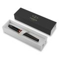 Roller Parker IM Professionals má tělo a víčko pokryté černým lakem, potažené pomocí techniky PVD odolnou matně černou vrstvou. Víčko a dolní úchopovou část zdobí výrazný oranžový prstenec.