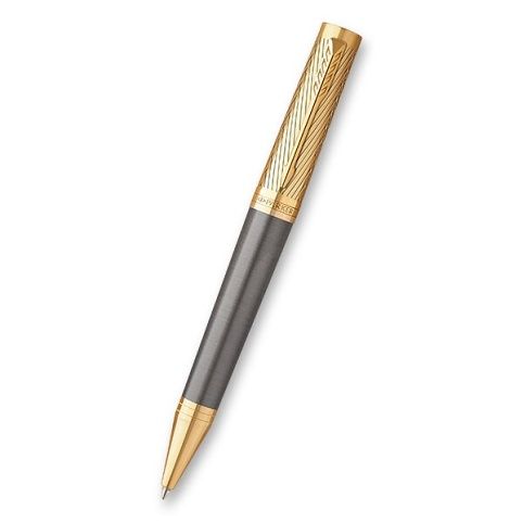 Sada obsahuje zápisník v šedé barvě a kuličkové pero Parker Ingenuity Premium Arrow s mosazným tělem pokrytým lesklým šedým lakem, vrchní část se zdobenými rytinami vyvedenými technikou leptání, pozlacená pomocí techniky PVD. V kombinaci s doplňky pozlacenými pomocí techniky PVD.