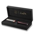 Roller Parker Ingenuity SE24 Arnold Palmer Red GT se vyznačuje elegantním, temně červeným lakovaným tělem s postupným přechodem barev. Úchopová část je z broušeného světlého zlata. Víčko je vyrobeno z nerezové oceli zdobené tříbarevným gravírováním, pozlacené pomocí techniky PVD a ozdobeno ikonickým logem Palmerova deštníku.