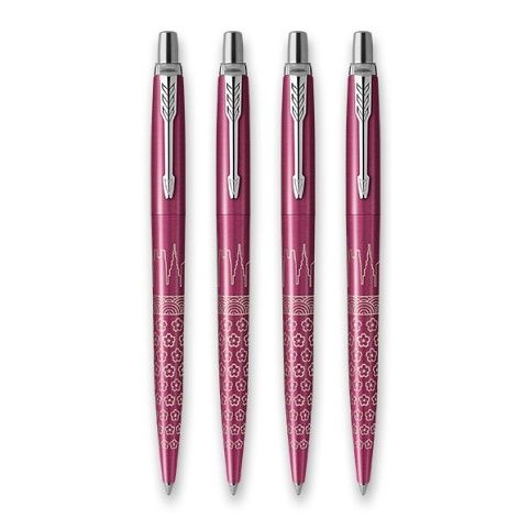 Balíček 4 ks kuličkového pera Parker Jotter SE Tokyo Pink CT ze speciální edice Parker Jotter Global Icons. Tato edice je vydána společností Parker na počest nejvíce ohromujících měst planety. Kuličkové pero Parker Jotter SE Tokyo Pink CT s originálním designem má nerezové tělo pokryté růžovým lakem. Laserem vyvedený vzor v designu města Tokyo a rozkvetlých kvítků japonské třešně Sakura. V kombinaci s doplňky z nerezové oceli.