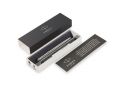 Tělo a víčko z broušené nerezové oceli. V kombinaci s klipem pokoveným chromem, s leštěnou úpravou. Hrot z nerezové oceli.