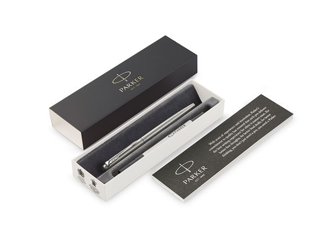Parker Jotter je designérskou klasikou a důvěrně známou modelovou řadou, oceňovanou zejména pro svou kvalitu, spolehlivost a příznivý poměr ceny a výkonu. Jedná se o nadčasový model,, který i díky široké nabídce povrchových provedení a praktickému, jednoduchému tvaru patří mezi nejoblíbenější.