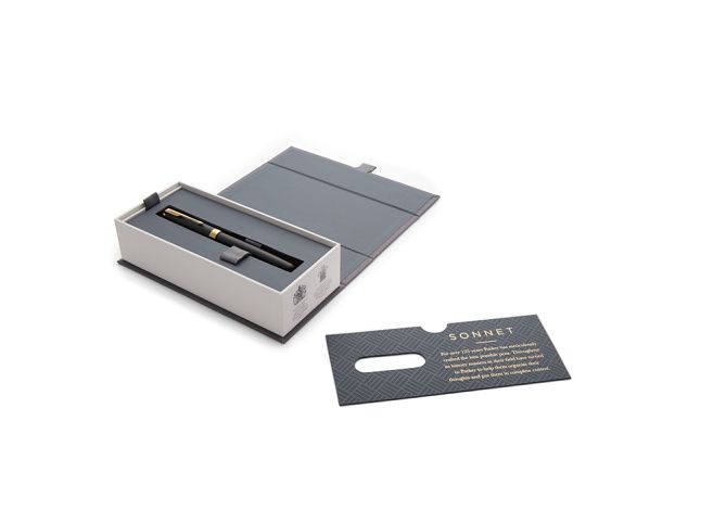 Nadčasová elegance modelu Sonnet, jeho vytříbený styl i rozmanité povrchové úpravy skvěle navazují na designérskou tradici značky Parker. Sonnet je dokonalým zosobněním všeho, co Parker umí nejlépe – mistrovského zpracování hrotů z 18karátového zlata, ideálního rozložení hmotnosti pera i pečlivého sestavení jednotlivých, celkem 17 různých dílů. Modelová řada Sonnet je skutečně nadčasová…a zároveň vždy aktuální.