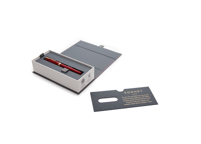 skvěle navazují na designérskou tradici značky Parker. Sonnet je dokonalým zosobněním všeho, co Parker umí nejlépe – mistrovského zpracování hrotů z 18karátového zlata, ideálního rozložení hmotnosti pera i pečlivého sestavení jednotlivých, celkem 17 různých dílů. Modelová řada Sonnet je skutečně nadčasová…a zároveň vždy aktuální.