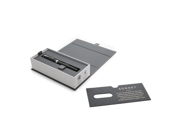 Nadčasová elegance modelu Sonnet, jeho vytříbený styl i rozmanité povrchové úpravy skvěle navazují na designérskou tradici značky Parker. Sonnet je dokonalým zosobněním všeho, co Parker umí nejlépe – mistrovského zpracování hrotů z 18karátového zlata, ideálního rozložení hmotnosti pera i pečlivého sestavení jednotlivých, celkem 17 různých dílů. Modelová řada Sonnet je skutečně nadčasová…a zároveň vždy aktuální.