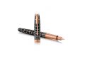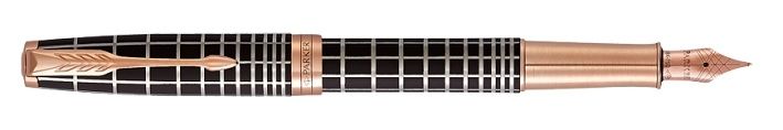 Plnicí pero Parker Sonnet Brown Rubber PGT s tělem a víčkem pokrytým matně hnědým lakem s efektem připomínajícím pryž, vše doplněno o zdobné rytiny vytvořené laserem. V kombinaci s doplňky pokovenými růžovým zlatem. Hrot z 18karátového zlata zcela pokovený růžovým zlatem.Plnicí pero:nasazovací víčkostandardní konvertor s pístem pro plnění pera inkoustem Quink z lahvičkymožnost používat i inkoustové bombičky QuinkVyrobeno ve Francii. Dodáváno v dárkové kazetě s pouzdrem a bombičkou.