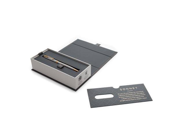 Nadčasová elegance modelu Sonnet, jeho vytříbený styl i rozmanité povrchové úpravy skvěle navazují na designérskou tradici značky Parker. Sonnet je dokonalým zosobněním všeho, co Parker umí nejlépe – mistrovského zpracování hrotů z 18karátového zlata, ideálního rozložení hmotnosti pera i pečlivého sestavení jednotlivých, celkem 17 různých dílů. Modelová řada Sonnet je skutečně nadčasová…a zároveň vždy aktuální.