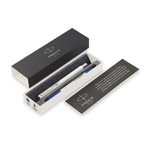 Jsou věci, na které se potřebujeme spolehnout každý den. Díky prověřenému mistrovství značky Parker je Vector psacím nástrojem, kterému lze beze zbytku důvěřovat. Tělo i víčko z bílého tvrzeného plastu, úchopová část a doplňky z nerezové oceli.