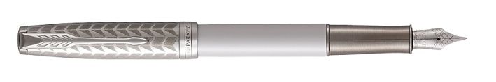 Perleťově lakované tělo, víčko z nerezové oceli se zdobným vzorem vytvořeným leptáním. V kombinaci s doplňky pokovenými palladiem. Hrot z 18karátového zlata (ryzost Au 750/1000) s křížovou rytinou zcela pokovený rhodiem. Plnicí pero: nasazovací víčko standardní konvertor s pístem pro plnění pera inkoustem Quink z lahvičky možnost používat i inkoustové bombičky Quink Vyrobeno ve Francii. Dodáváno s 2 černými bombičkami, v elegantním dárkovém balení.