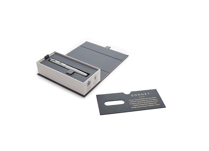 Nadčasová elegance modelu Sonnet, jeho vytříbený styl i rozmanité povrchové úpravy, skvěle navazují na designérskou tradici značky Parker. Sonnet je dokonalým zosobněním všeho, co Parker umí nejlépe – mistrovského zpracování hrotů z 18karátového zlata, ideálního, rozložení hmotnosti pera i pečlivého sestavení jednotlivých, celkem 17 různých dílů. Modelová řada Sonnet je skutečně nadčasová…a zároveň vždy aktuální.