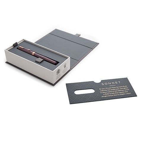 Nadčasová elegance modelu Sonnet, jeho vytříbený styl i rozmanité povrchové úpravy skvěle navazují na designérskou tradici značky Parker. Sonnet je dokonalým zosobněním všeho, co, Parker umí nejlépe – mistrovského zpracování hrotů z 18karátového zlata, ideálního rozložení hmotnosti pera i pečlivého sestavení jednotlivých, celkem 17 různých dílů. Modelová, řada Sonnet je skutečně nadčasová a zároveň vždy aktuální.