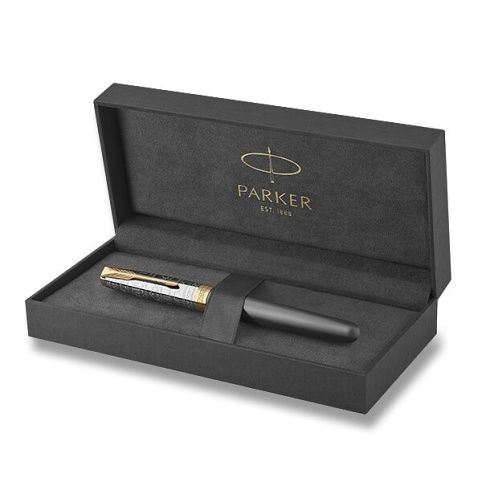 standardn černá náplň Quink pro rollery, Vyrobeno ve Francii. Dodáváno v elegantním dárkovém balení., Speciální kolekce Parker Sonnet Ancient China čerpá inspiraci z majestátnosti Velké čínské zdi. Víčko pera zdobí motivy hradeb, které harmonicky doplňují elegantní linie střech, znázorňující průsmyk Jiayu. Výrazné věže a oblouky pak zachycují fascinující architekturu části Badaling. Na spodní části víčka je navíc symbolicky vyryta celková délka Velké, čínské zdi.