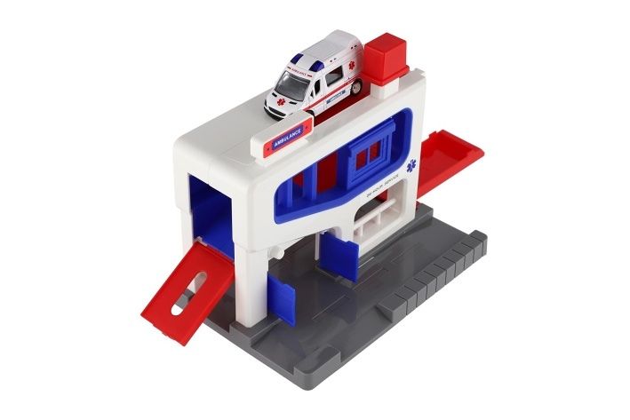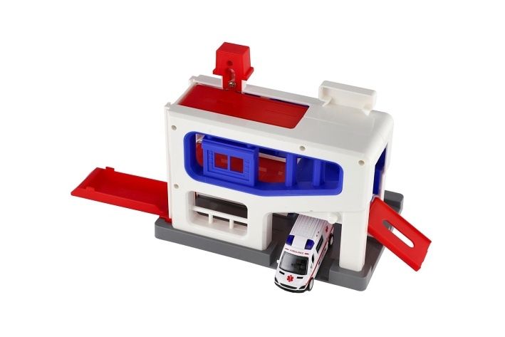 Parkovací garáž + auto ambulance plast v krabici 20x20x14cm