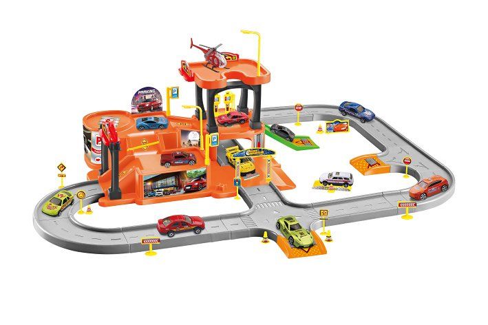 Postav si vlastní parkovací stanici s garáží, myčkou a heliportem! Při návratu z práce nezapomeň, že je třeba umýt auto a natankovat! Zítra se přeci odjíždí na dovolenou! Co to je za hluk? Na střeše zase přistává vrtulník! Tak opatrně, ať v pořádku dorazíš domů!
