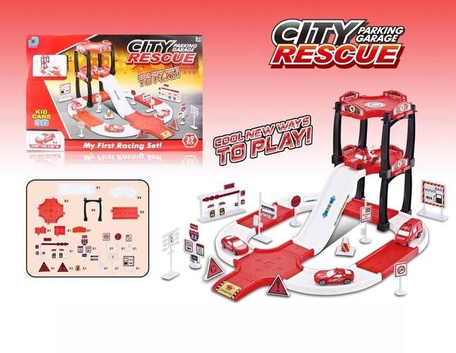 Parkovací hasičská sada obsahuje mnoho doplňků a 4 autíčka. Výrobek je vhodný pro děti od 3 let.
