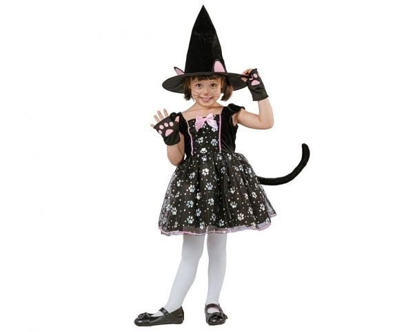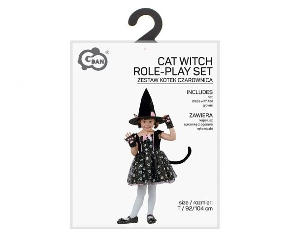 Převlek pro menší děti kolem 92 - 104 cm. Převlek obsahuje šaty s ocáskem, klobouk a rukavičky.