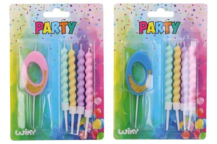Párty svíčka číslo 0 + 4ks svíček.