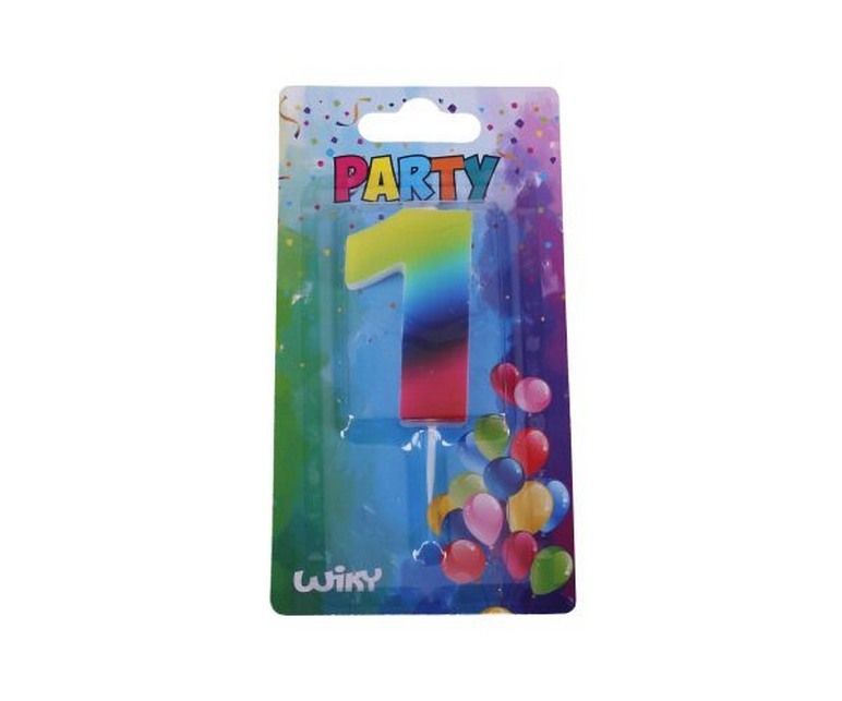 Narozeninová svíčka duhová číslo 1 se stojánkem z vosku pro pohodlné a pevné umístění na dort. Svíčky nejsou určené ke konzumaci. Rozměr svíčky : 4 x 6 cm