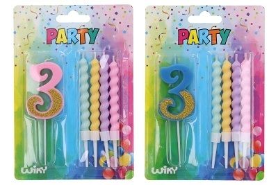 Párty svíčka číslo 3 + 4ks svíček.