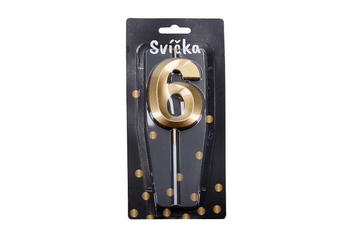 Párty svíčka ve tvaru čísla 6.