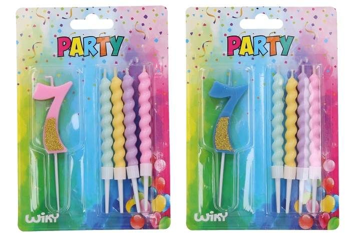 Párty svíčka číslo 7 + 4ks svíček.