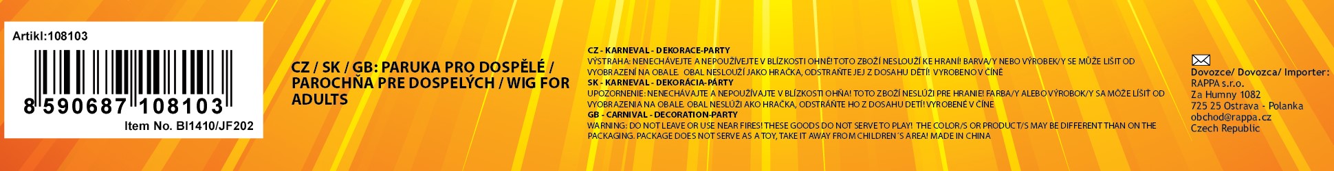Karnevalová paruka v motivu čarodějnice. Paruka má dlouhé černé vlasy a je dekorována stříbrným melírem. Perfektní doplněk ke kostýmu!