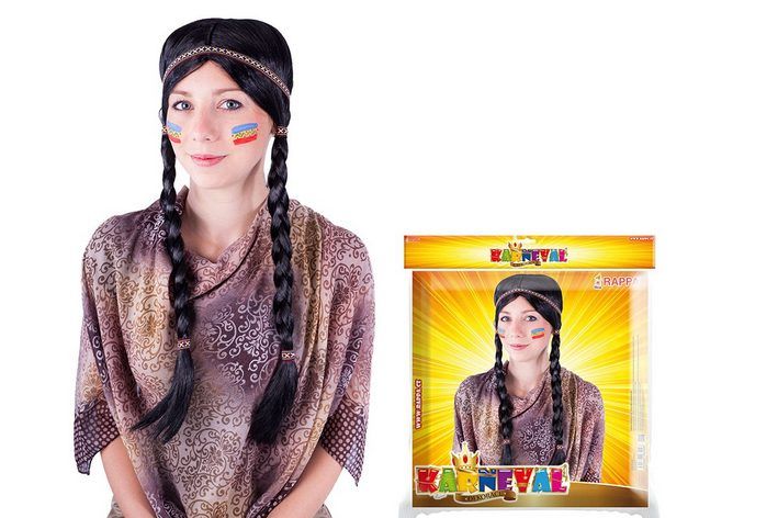Úchvatná karnevalová dámská paruka ve stylu indiánské Rybany je určena pro dospělé. Paruka s copánky je přizdobena stylovou čelenkou a gumičkami. S touto senzační parukou si užijete spoustu zábavy. Staňte se hvězdou karnevalového večírku!