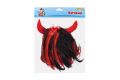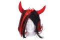 Paruku pro čerta tvoří černé vlasy s červenými prameny a s červenými textilními rohy.