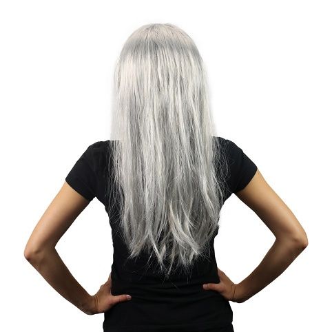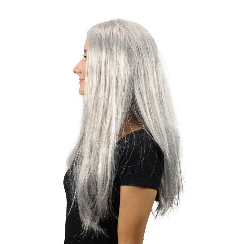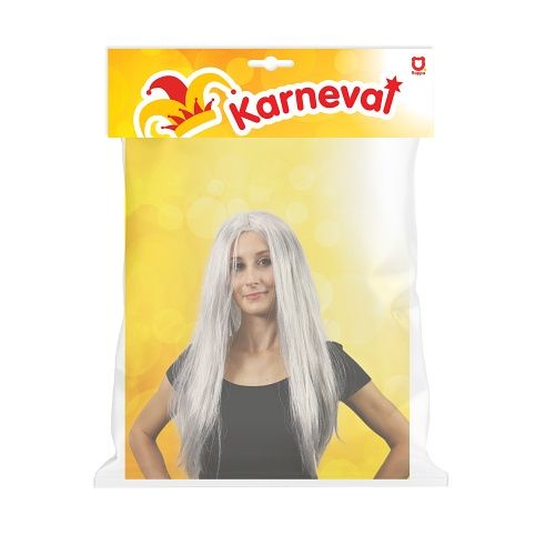 Karnevalová paruka v motivu čarodějnice. Paruka má dlouhé šedé vlasy. Perfektní doplněk ke kostýmu!