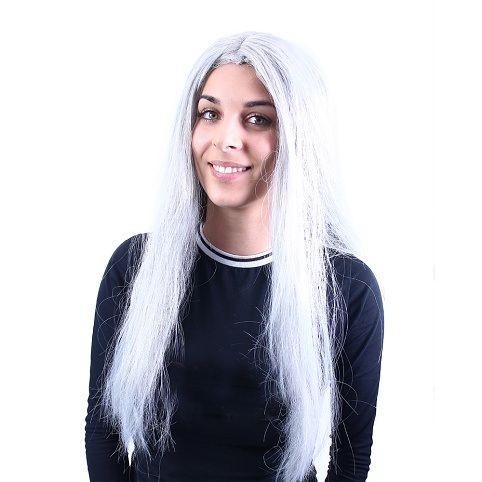 Karnevalová paruka v motivu čarodějnice. Paruka má dlouhé šedé vlasy. Perfektní doplněk ke kostýmu!