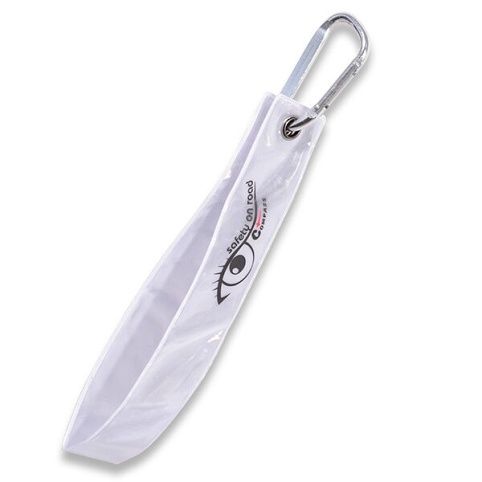 Reflexní přívěsek s karabinou pro zvýšení pasivní bezpečnosti. Viditelný za každého počasí. Snadno připevnitelná karabina na poutko, zip, batoh nebo na jiné vhodné viditelné místo.