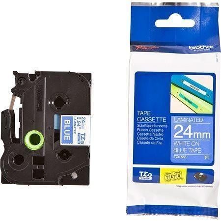 Páska "Tze-555", modrá s bílým potiskem, 24 mm x 8 m, BROTHER