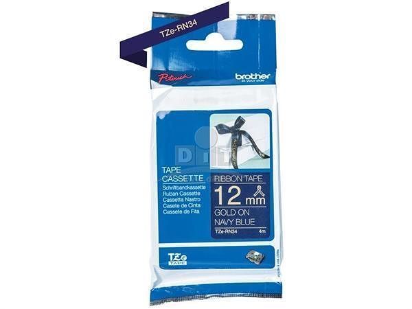 Páska "Tze", stuha, tmavě modrá se zlatým potiskem, 12 mm x 4 m, BROTHER
