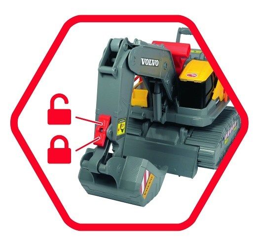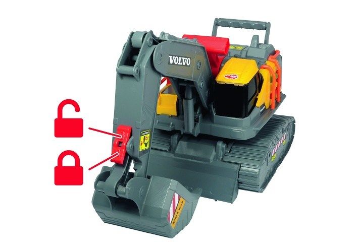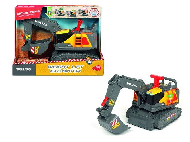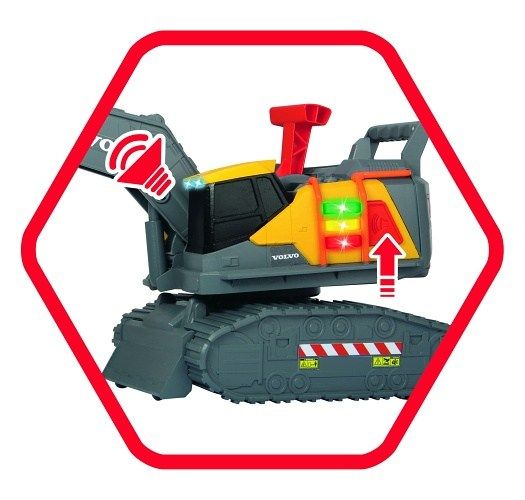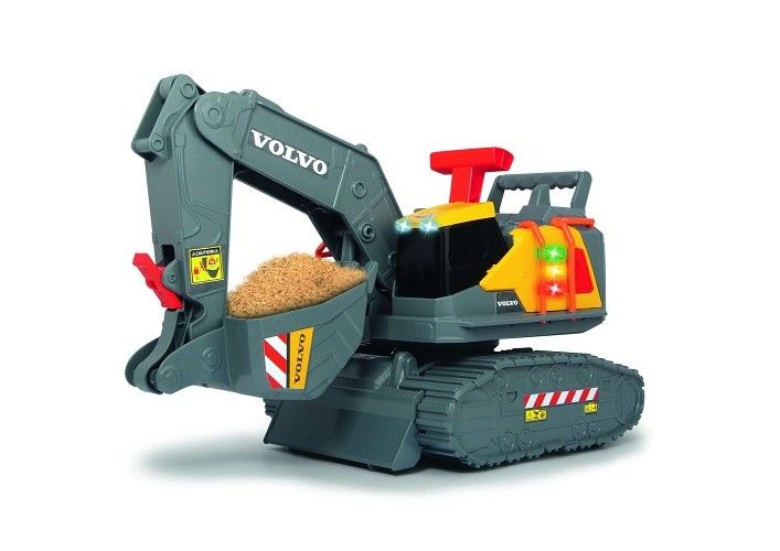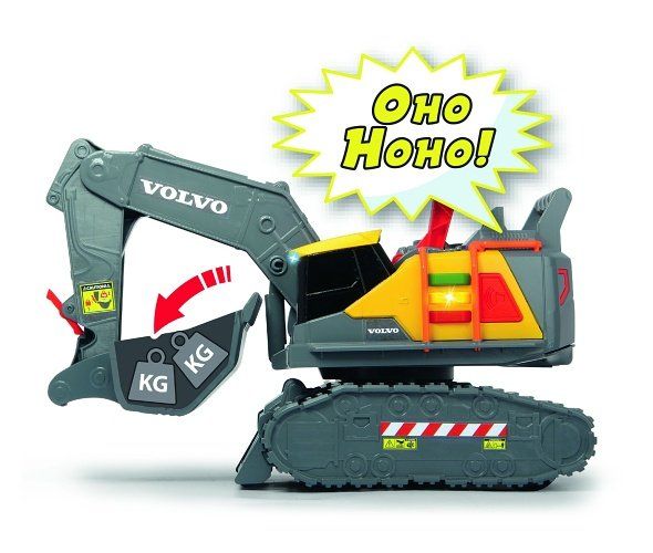 Stavební pásový bagr v licenci Volvo na volnoběh, se světelnými a zvukovými efekty, detekuje 3 různá zatížení. Délka 30 cm.