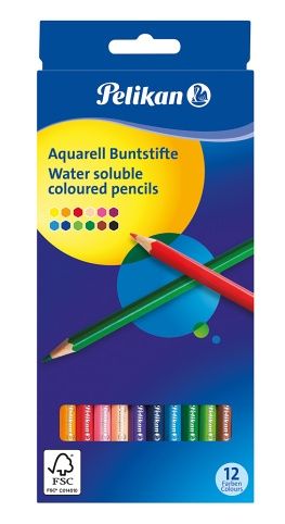 Pastelky Pelikan 12 barev akvarelové šestihranné, lakované, průměr tuhy 2,9 mm, lesní certifikace FSC