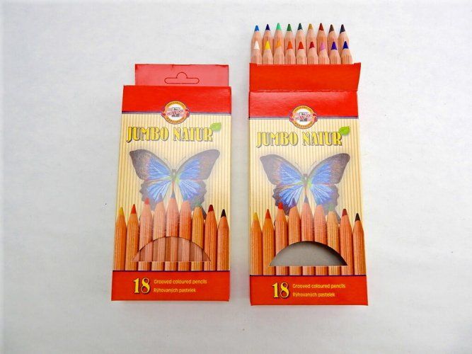 Šestihranné pastelové tužky OK-10 mm v dřevěném plášti, v přírodním provedení, na povrchu rýhované, v 18 odstínech. Silný profil tužky je vhodný pro držení a vedení tužky. Balené po 18 ks mix barev do kartonové krabičky. Jsou vhodné jak pro školní i umělecké kreslení.