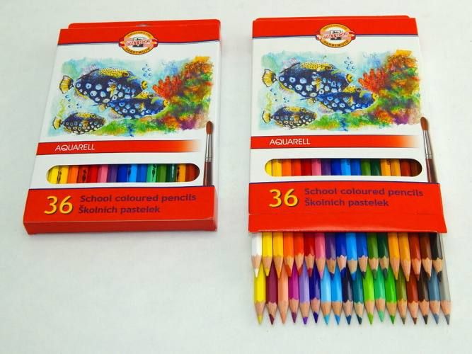 Souprava 36 ks AKVARELOVÝCH barevných pastelek v krabičce. Pastelky jsou šestihranné, vyznačují se sytou barevnou stopou s možností kresbu dále upravovat rozmýváním pomocí štětce, případně houbičky. Jsou vhodné pro školní a hobby kreslení.