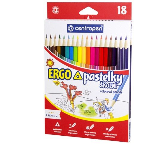 18 barev- ergonomické trojhranné tělo- snadno se ořezávají- syté barvy- odolné proti lámání
