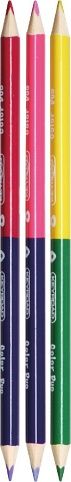 Školní pastelky oboustranné trojhranné, 24 barev. Dřevěné, lakované. Průměr jádra 3mm. Syté a zářivé barvy. Odolné proti nárazům. Dodávané v papírové krabičce. Na pastelce je volné místo pro zapsání jména.